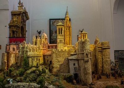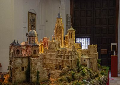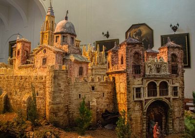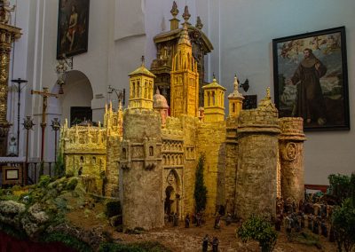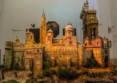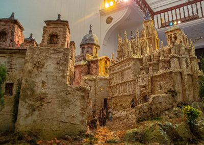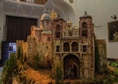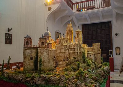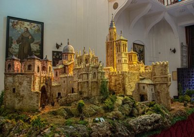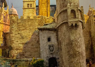 Un homenaje al gran artista de Urda. El Belén está inspirado en un dibujo del año 1958 de nuestro más internacional hermano, el desaparecido Guerrero Malagón. Toledo se eleva, se encierra y se vacía, abandonándose a sí mismo en este pesebre.