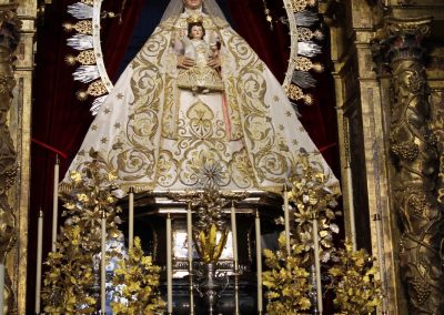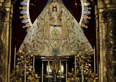 La Virgen de la Estrella, amanecía en la mañana del 3 de octubre con el manto bordado de la Coronación restaurado en 2015 por Sebastián Marchante y la Corona labrada por Fernando Marmolejo.