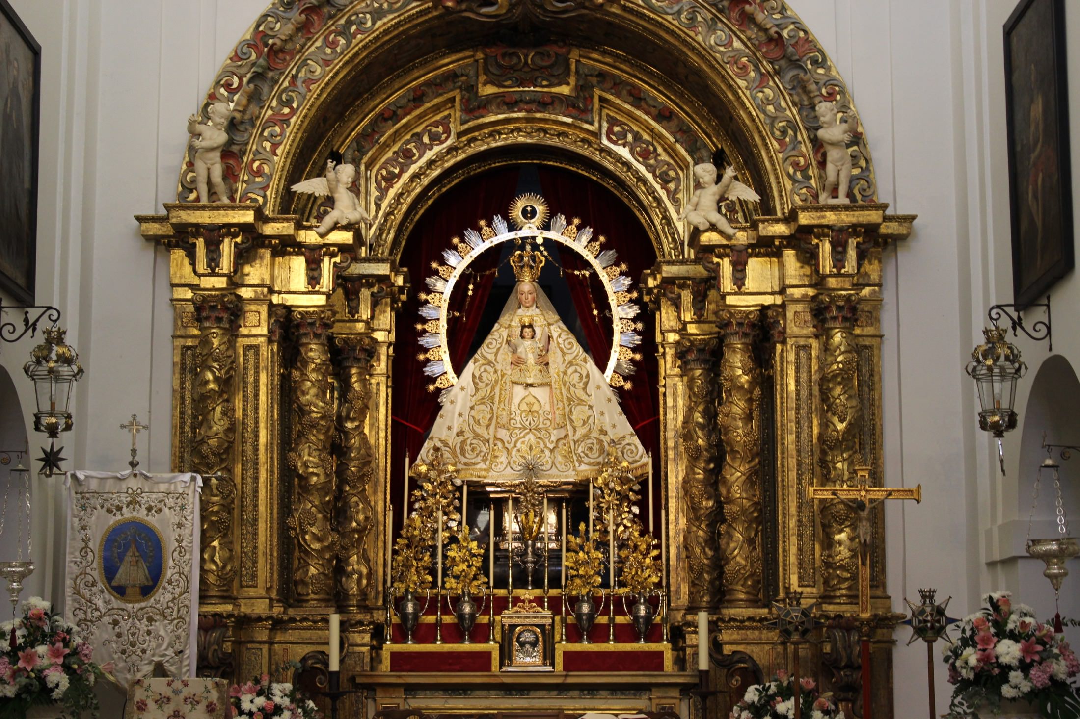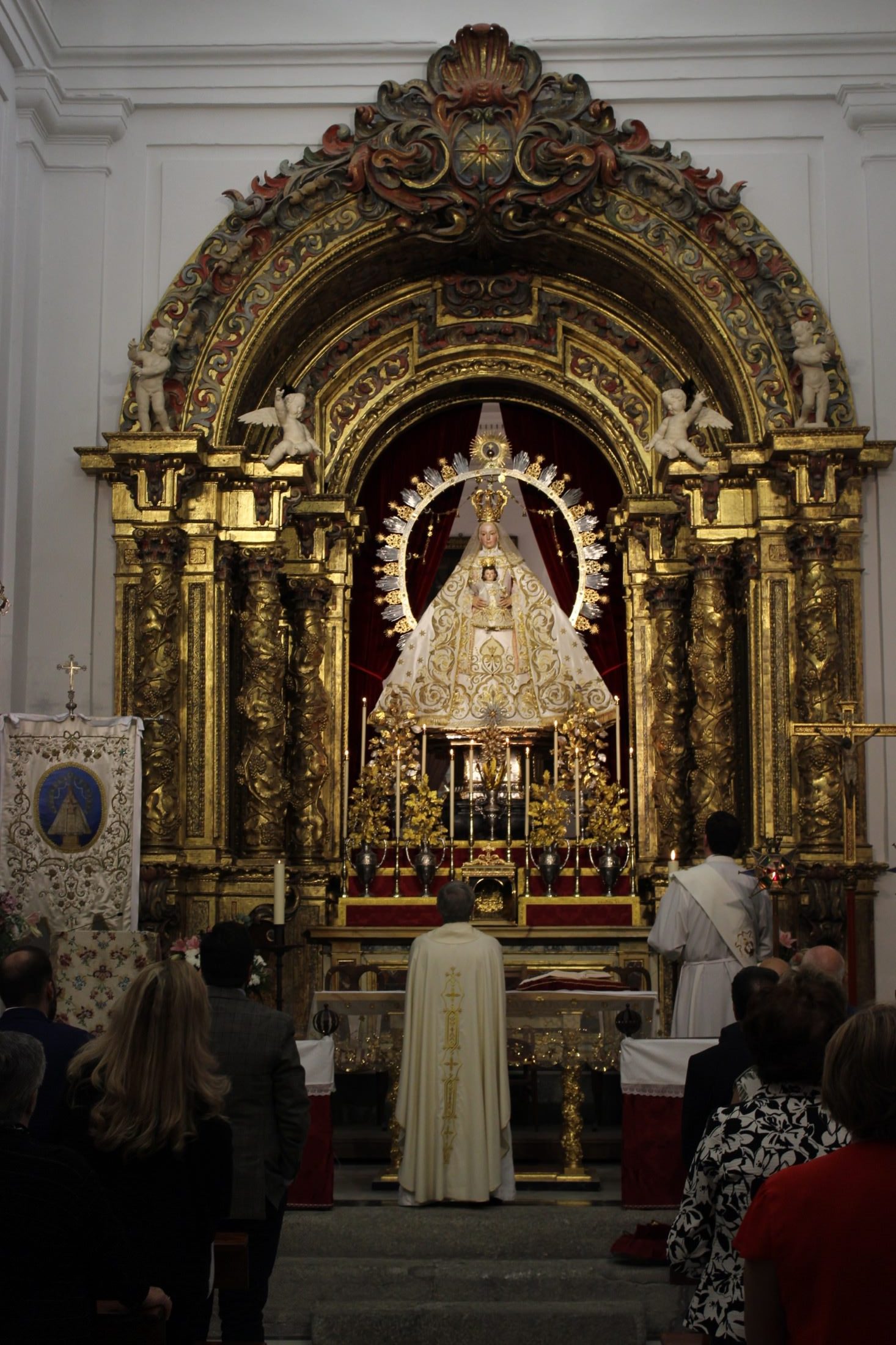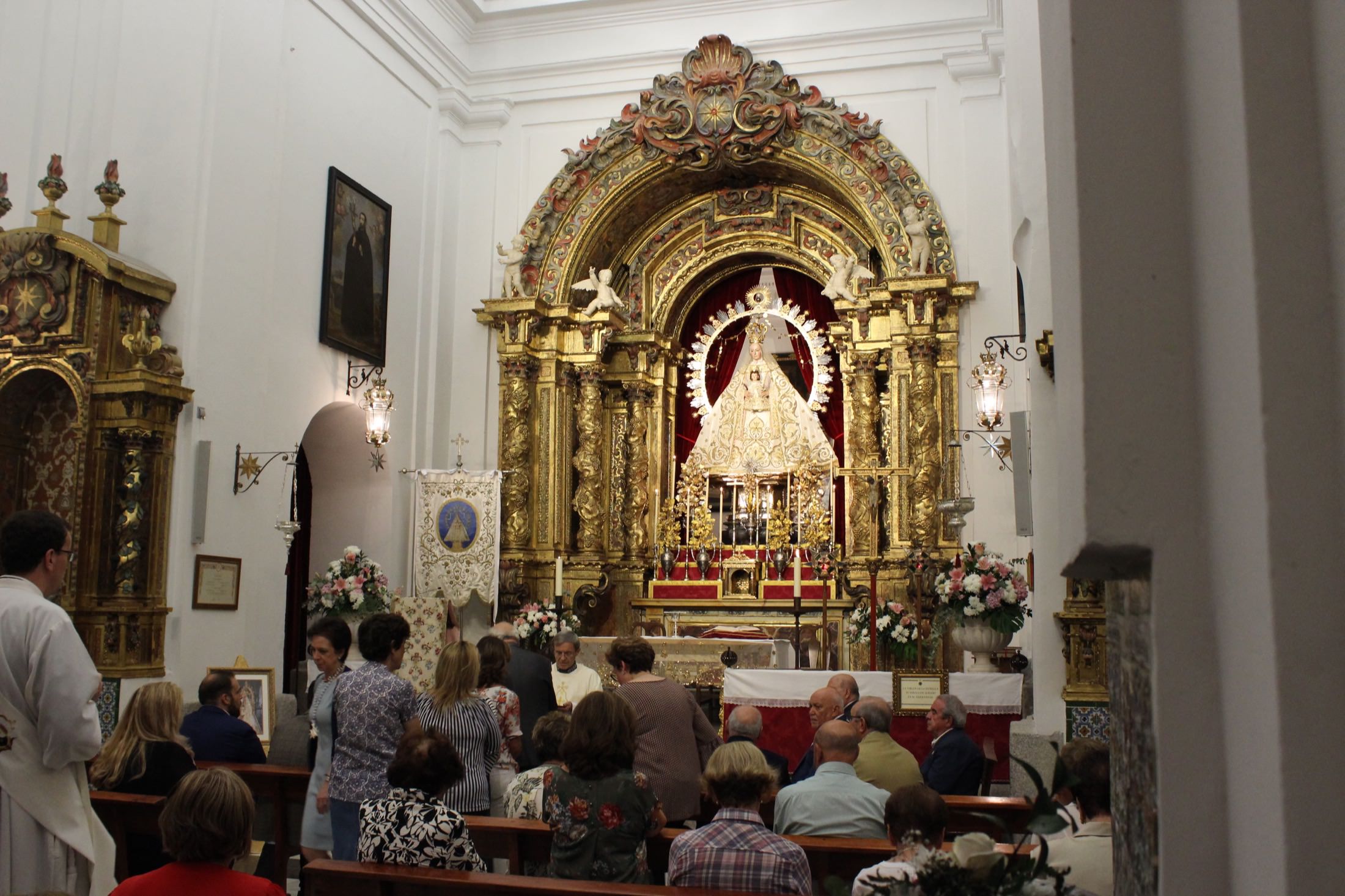 En el altar, adornado de manera especial para la conmemoración, se podían contemplar las jarras de plata labradas con antiguas flores de talco restauradas para la ocasión.