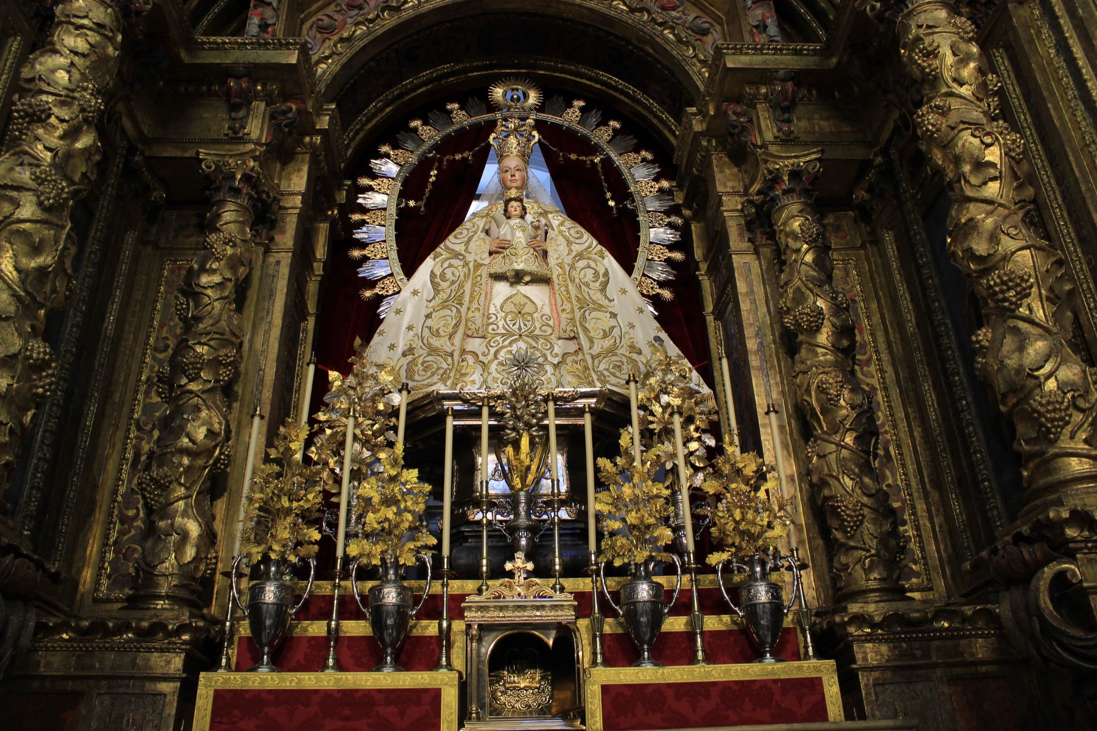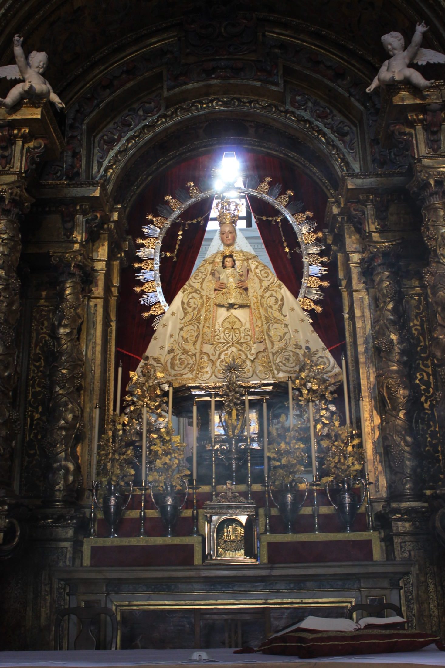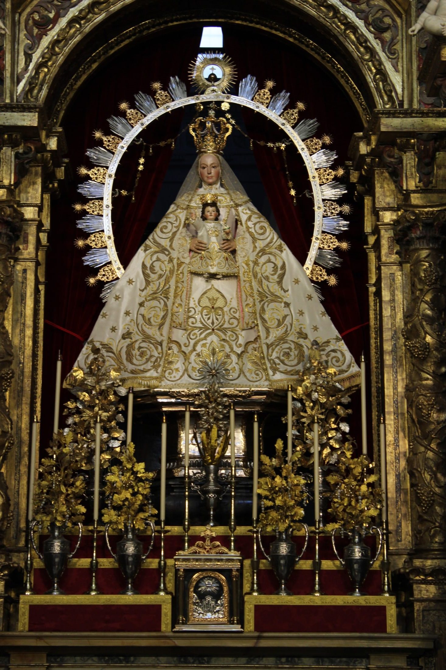 En el altar, adornado de manera especial para la conmemoración, se podían contemplar las jarras de plata labradas con antiguas flores de talco restauradas para la ocasión.