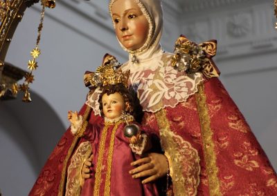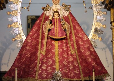 Fiel a la tradición, nuestra amantísima titular, la Virgen de la Estrella, amanecía este miércoles de ceniza ataviada con terno completo de espolín de seda datado de 1715, juego de puños de encaje de Bruselas, cuello del siglo XIX de encaje de aguja; además la Virgen lleva pendiente del rostrillo una estrella de plata, piedras y perla, perteneciente al joyero de la Señora. Luce además durante esta cuaresma la corona que labrara Fernando Marmolejo para la Coronación de la Virgen.