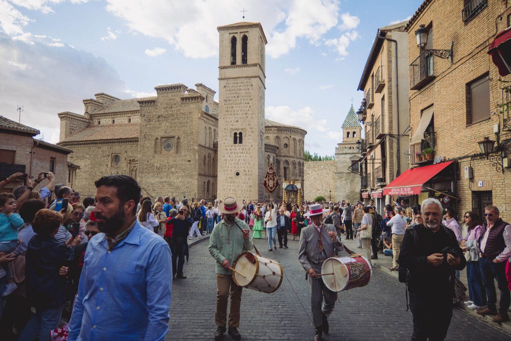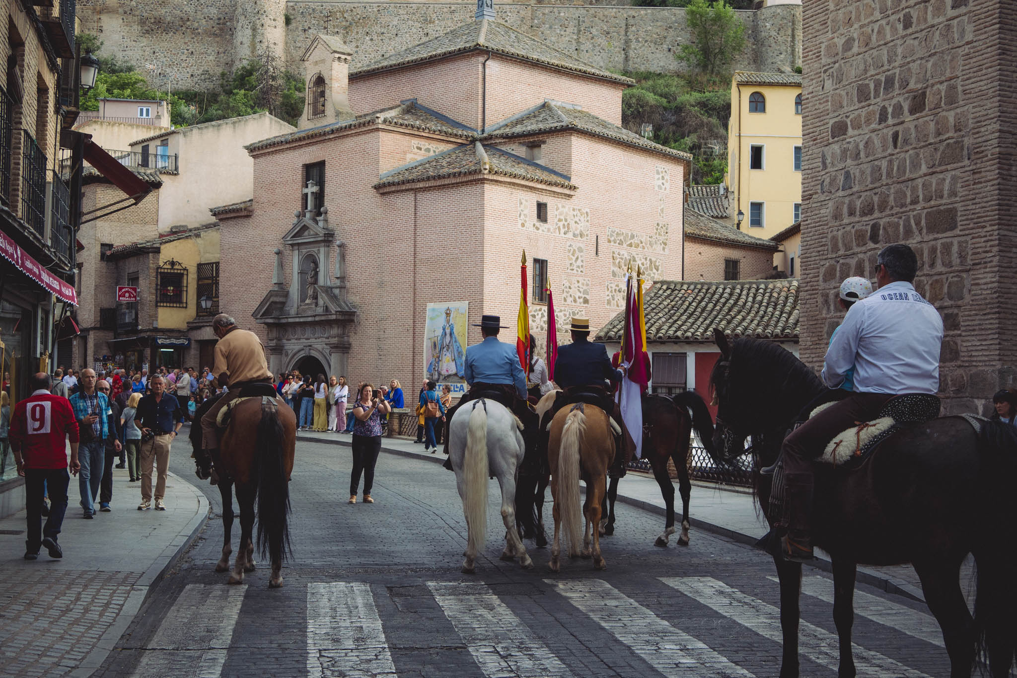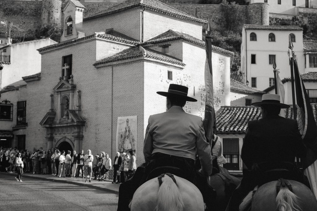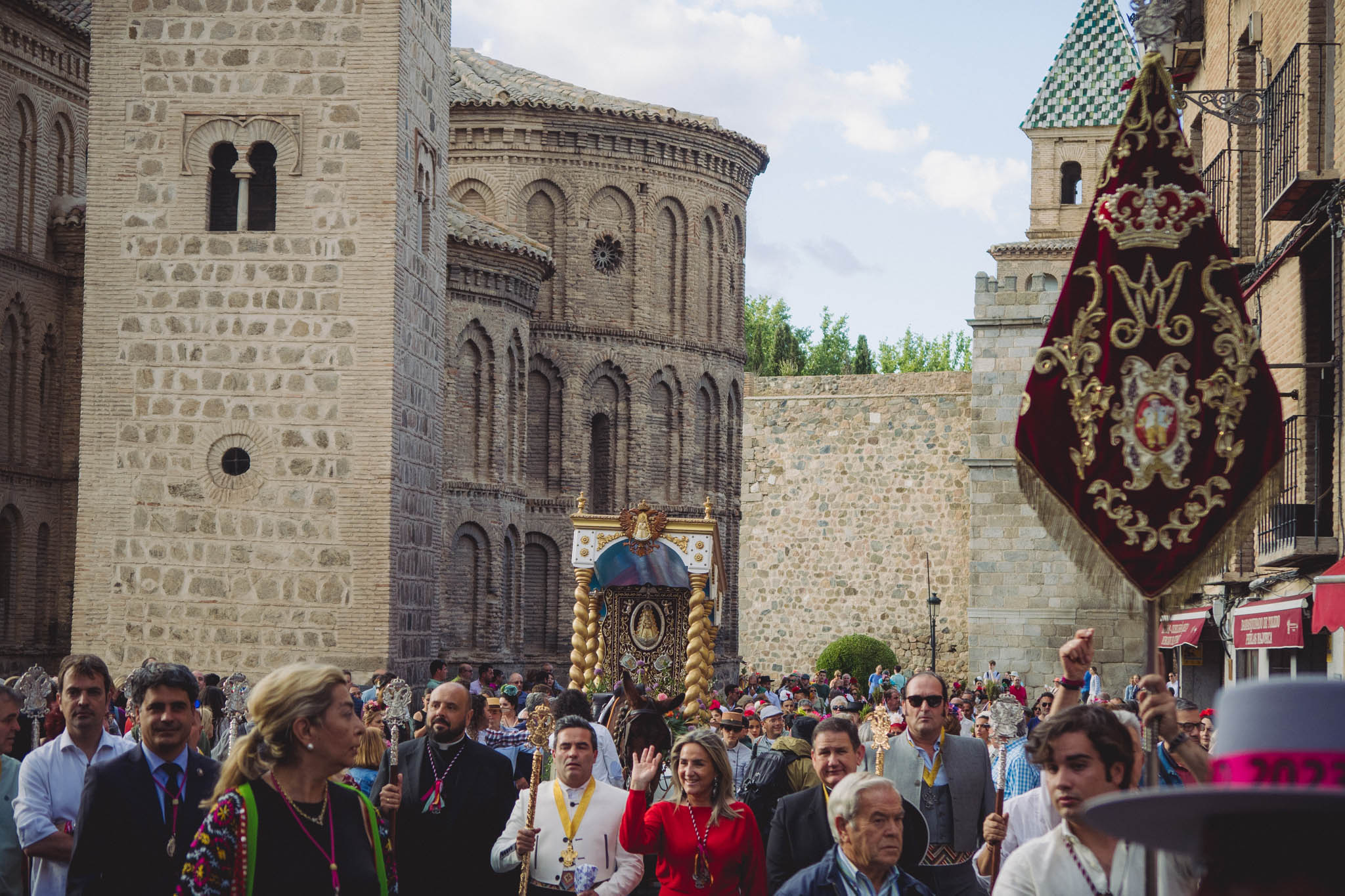 El Hermano Mayor, Daniel Torres, junto con la Camarera Mayor, Angelines García Cardeñosa, presidieron la representación de nuestra corporación, que recibieron a Adolfo del Cerro, presidente de la Hermandad filial, y toda su Junta de Gobierno. Distintas autoridades, como la Alcaldesa de Toledo, Milagros Tolón, formaban parte también de la comitiva que fue testigo de este histórico momento para ambas hermandades.