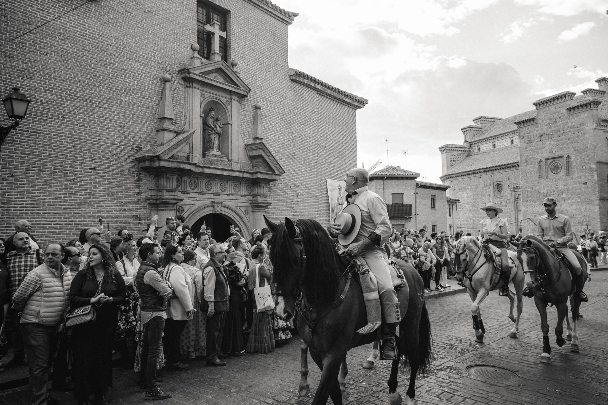 Pasadas las 7 de la tarde, se vislumbraba por el ábside de Santiago, el nutrido grupo de caballistas que hacían de pregoneros de lo que estaba por acontecer: el histórico encuentro entre las Hermandades del Rocío y su querido Simpecado y la Hermandad de la Estrella.