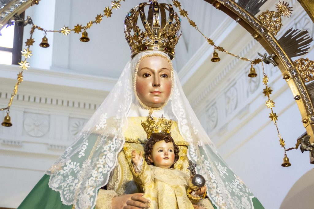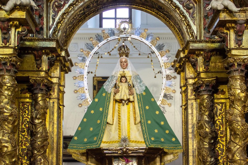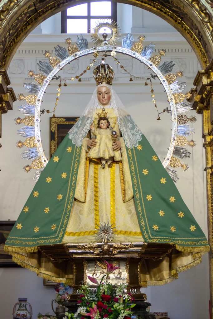 La Santísima Virgen de la Estrella viste desde hoy el la saya dorada de mangas perdidas y el manto verde de estrellas.