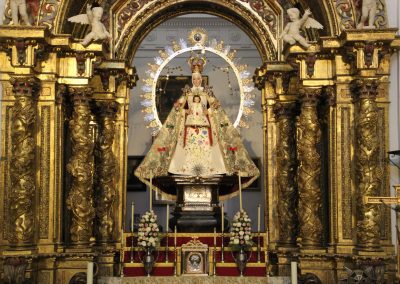 La Virgen de la Estrella preside su altar con motivo del mes de Mayo, mes de María Santísima de la Estrella ataviada de manera especial.
