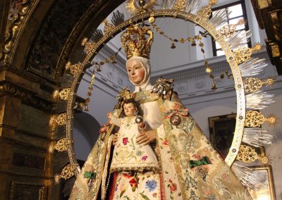 El conjunto lo completa la la corona de oro y plata sobredorada de Fernando Marmolejo, con la que nuestra titular fue coronada en 2015 y varios relicarios y joyas del ajuar de Nuestra Señora.