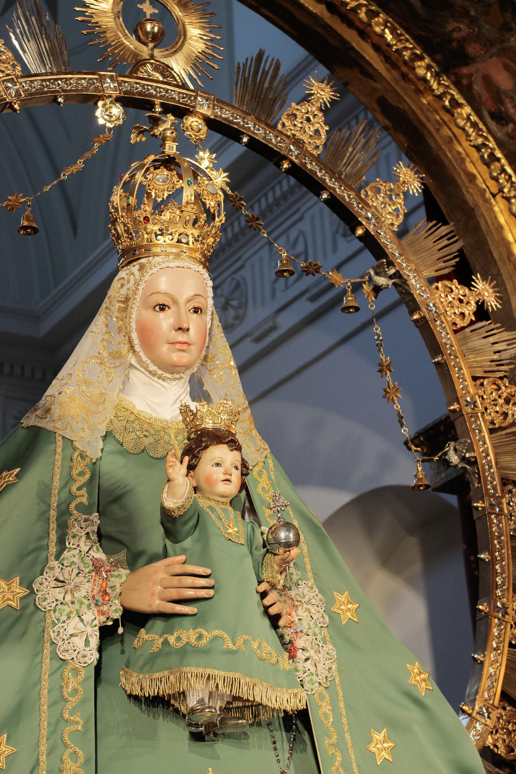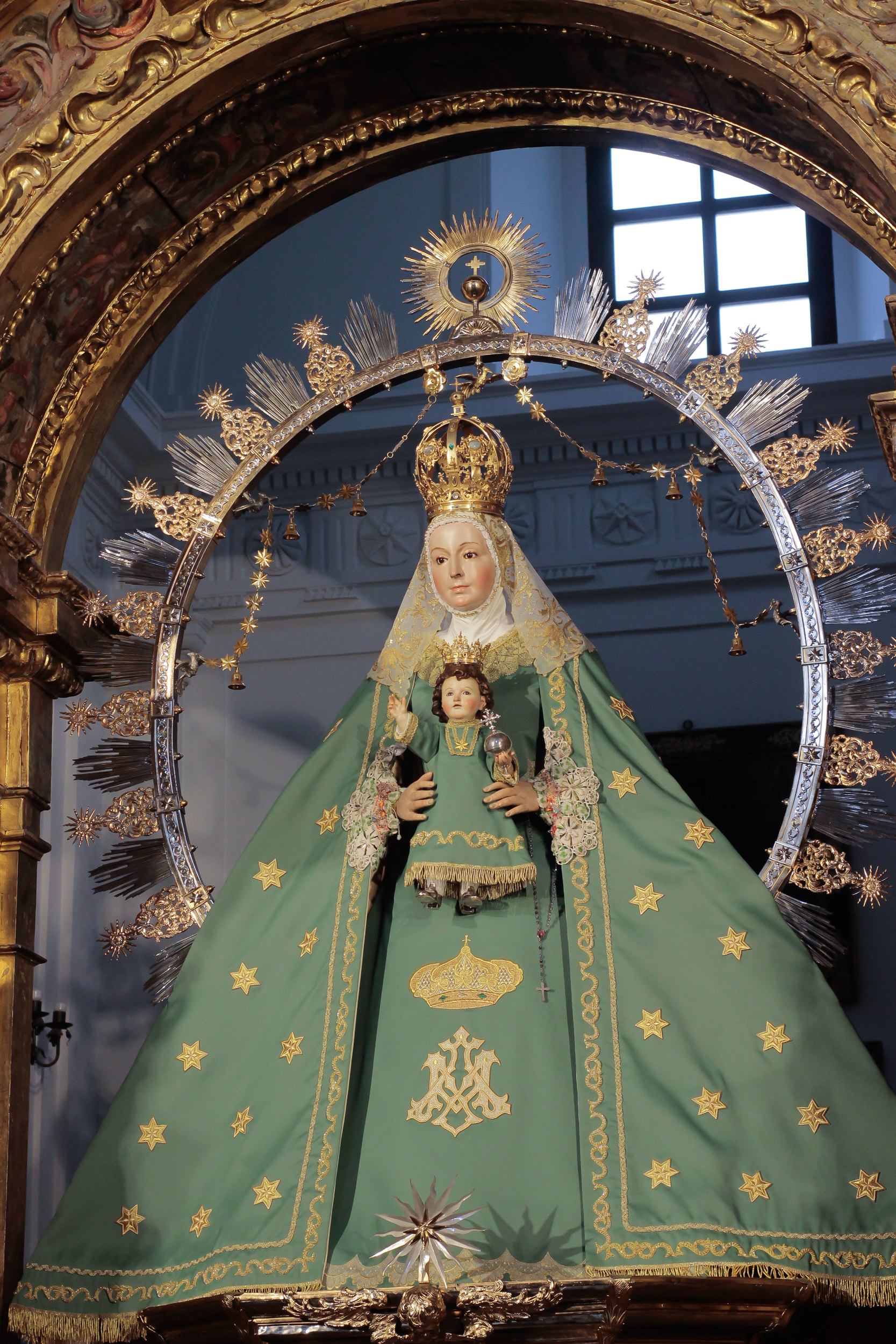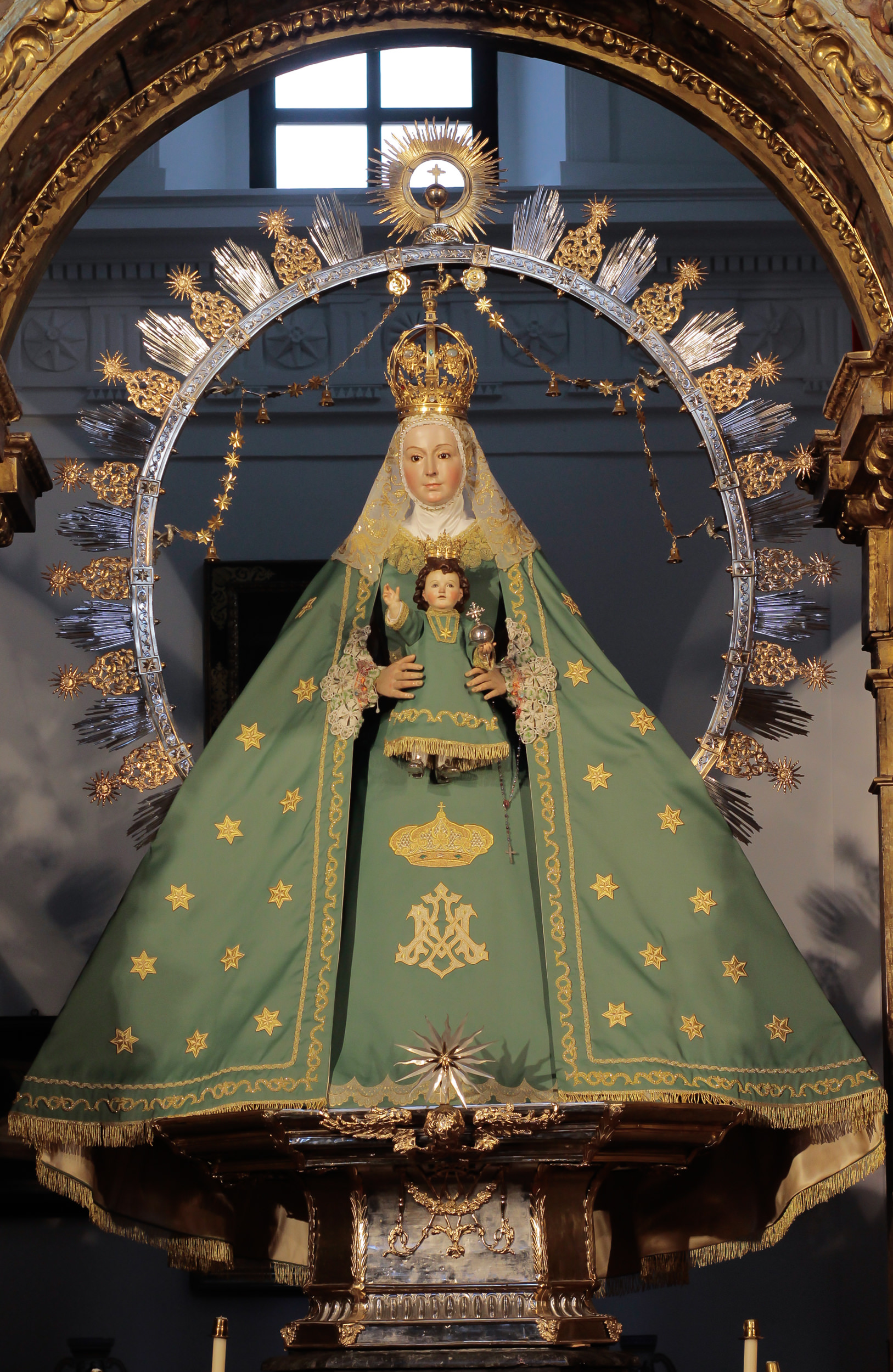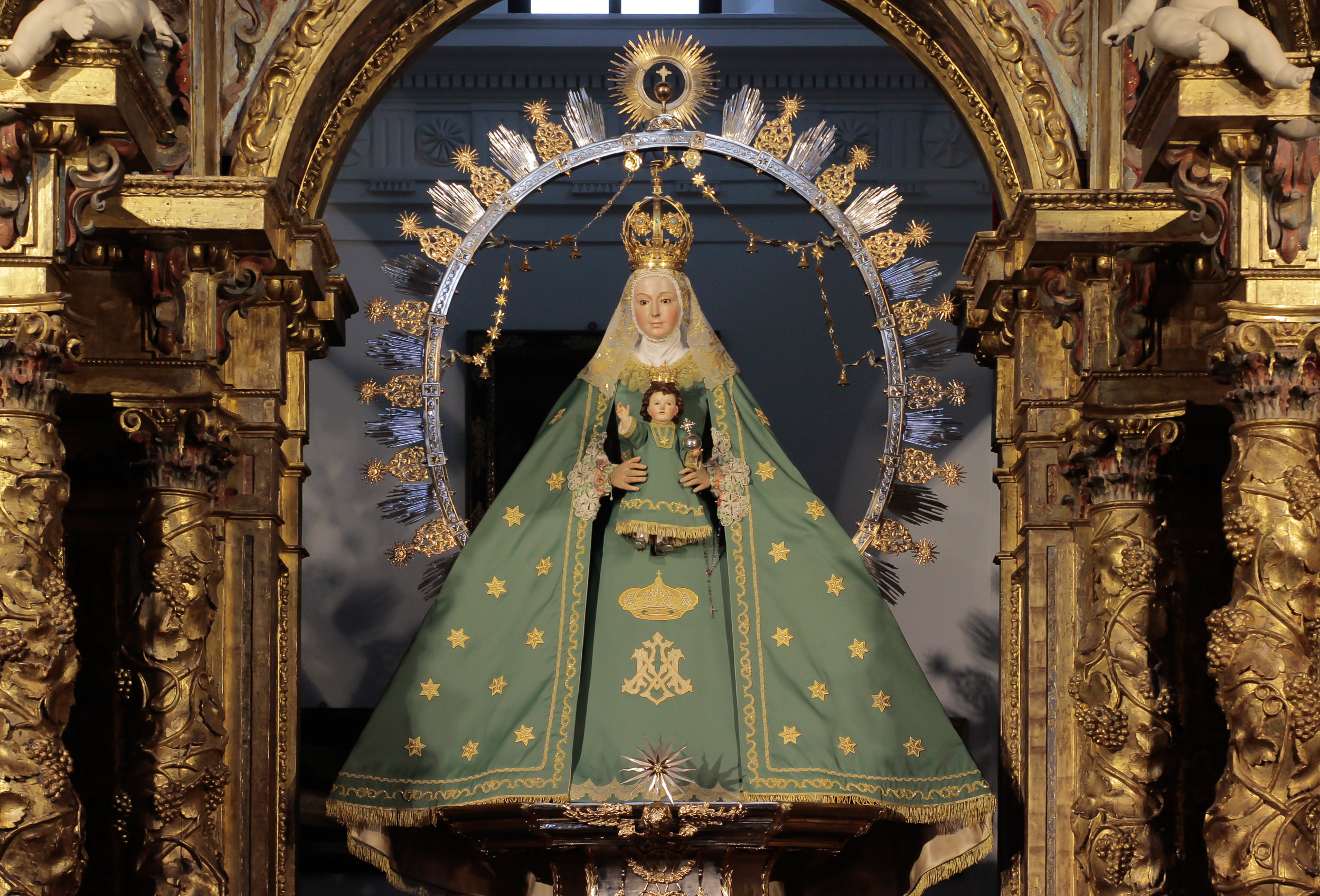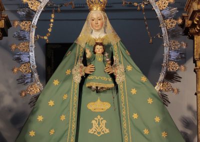 La Virgen de la Estrella se encuentra ataviada desde hoy con el terno verde de estrellas doradas, característico de esta época.
