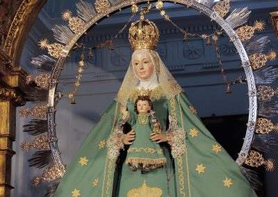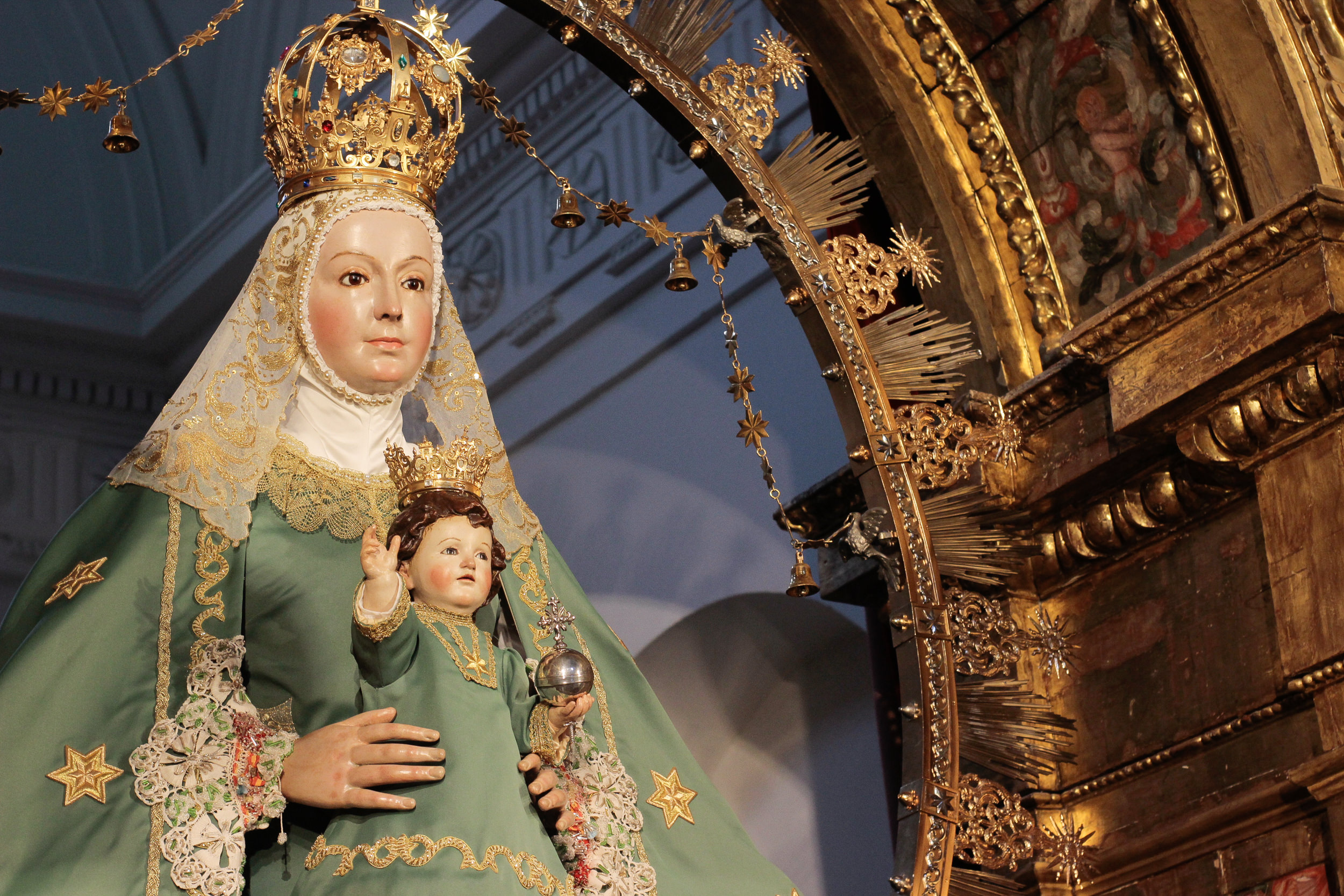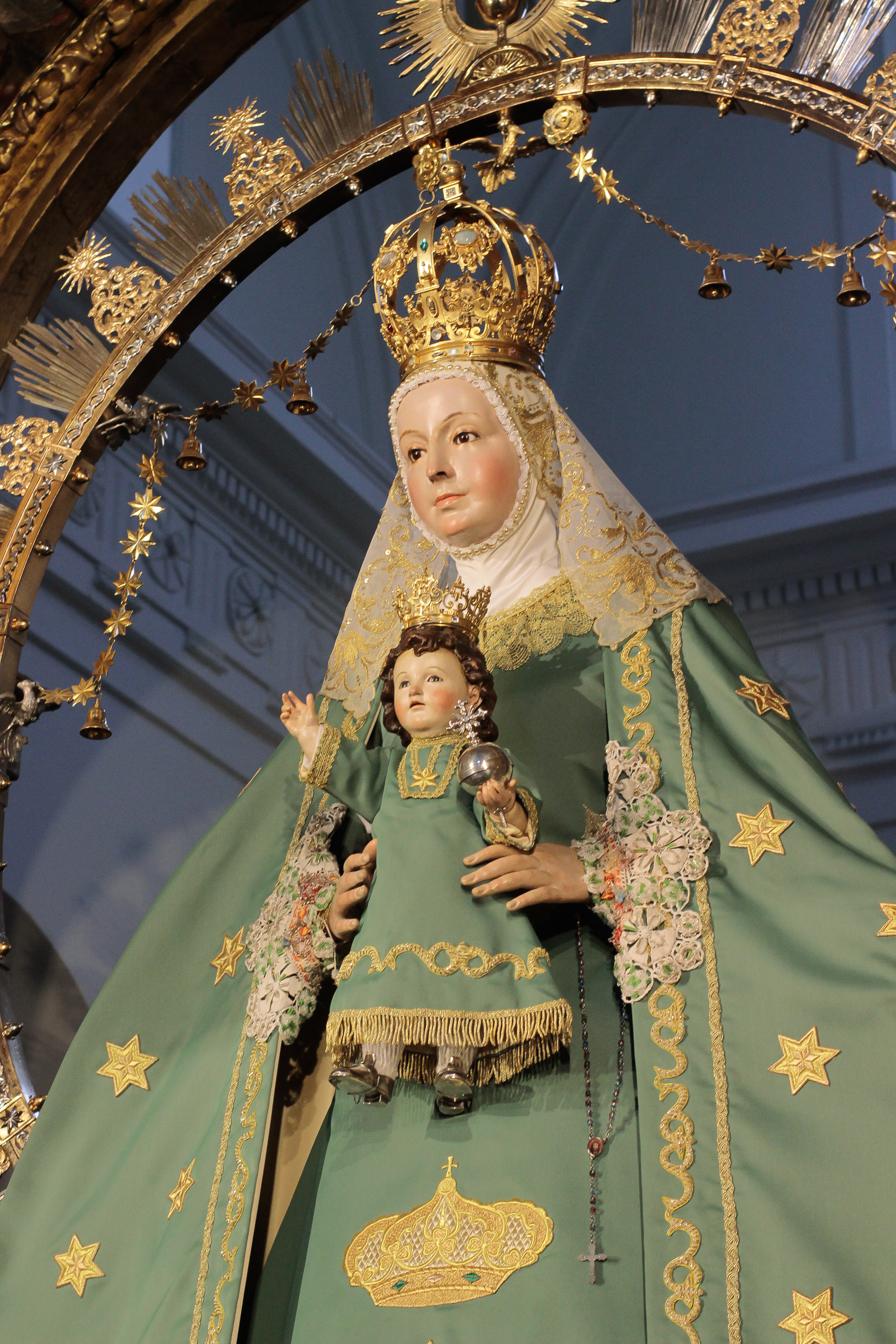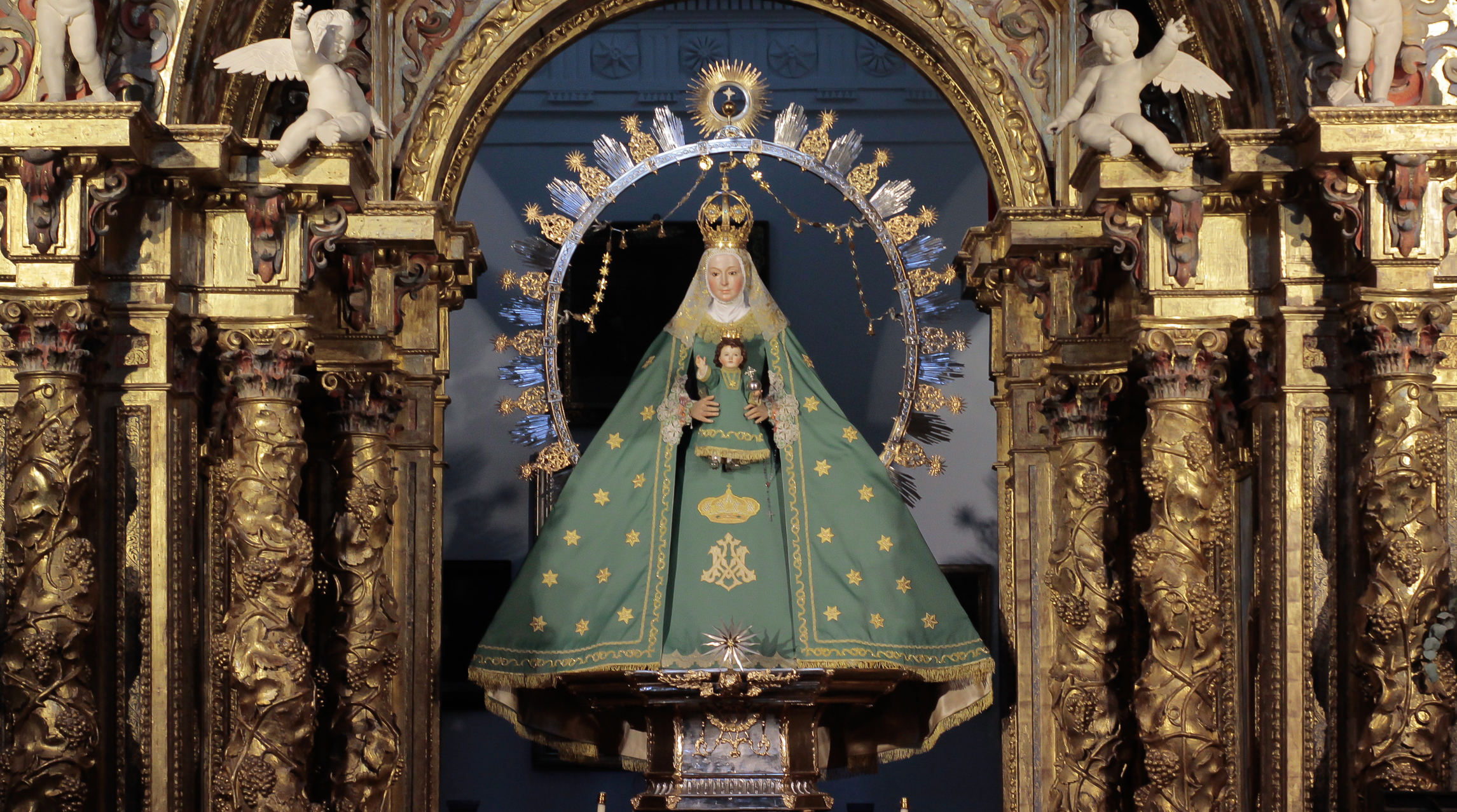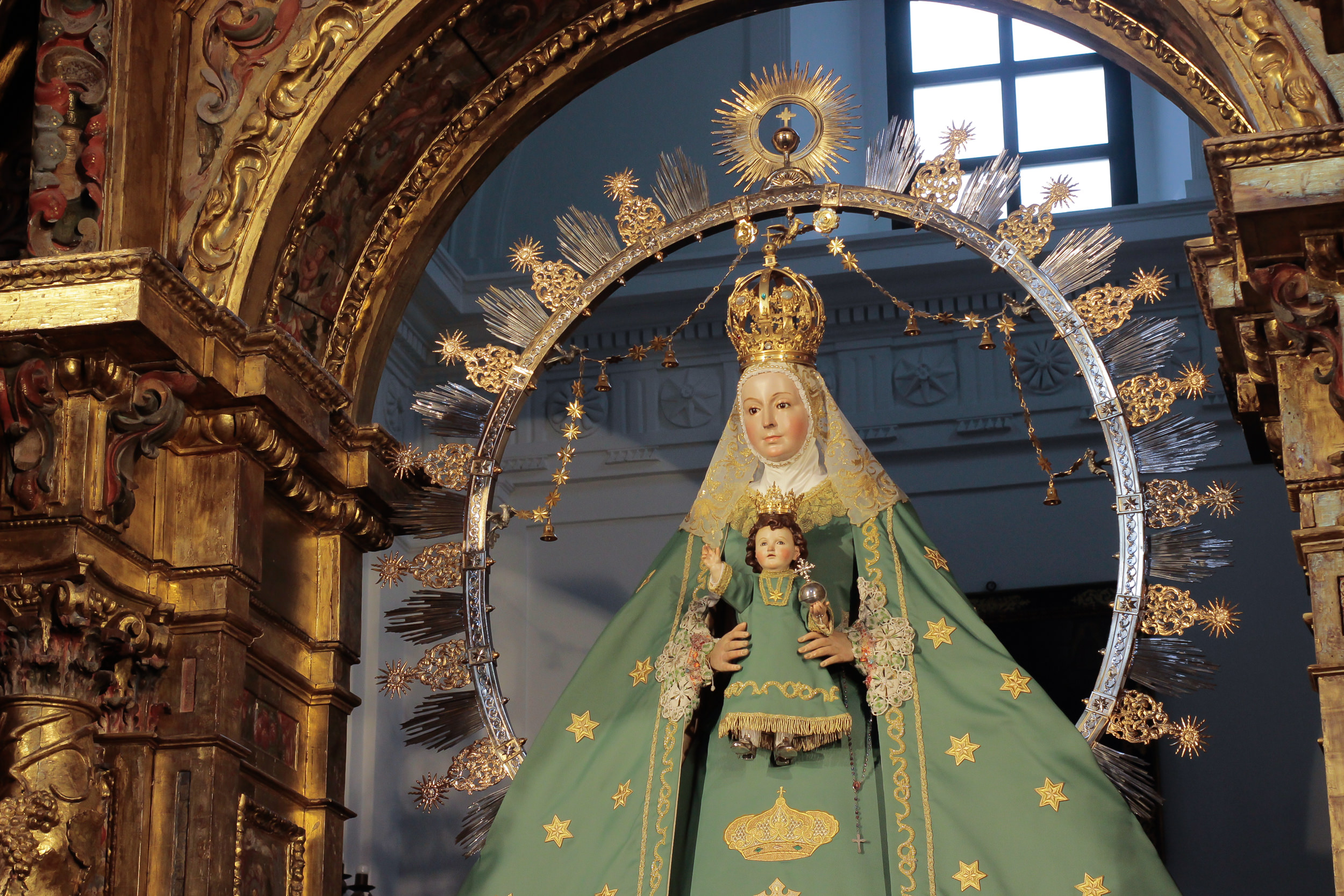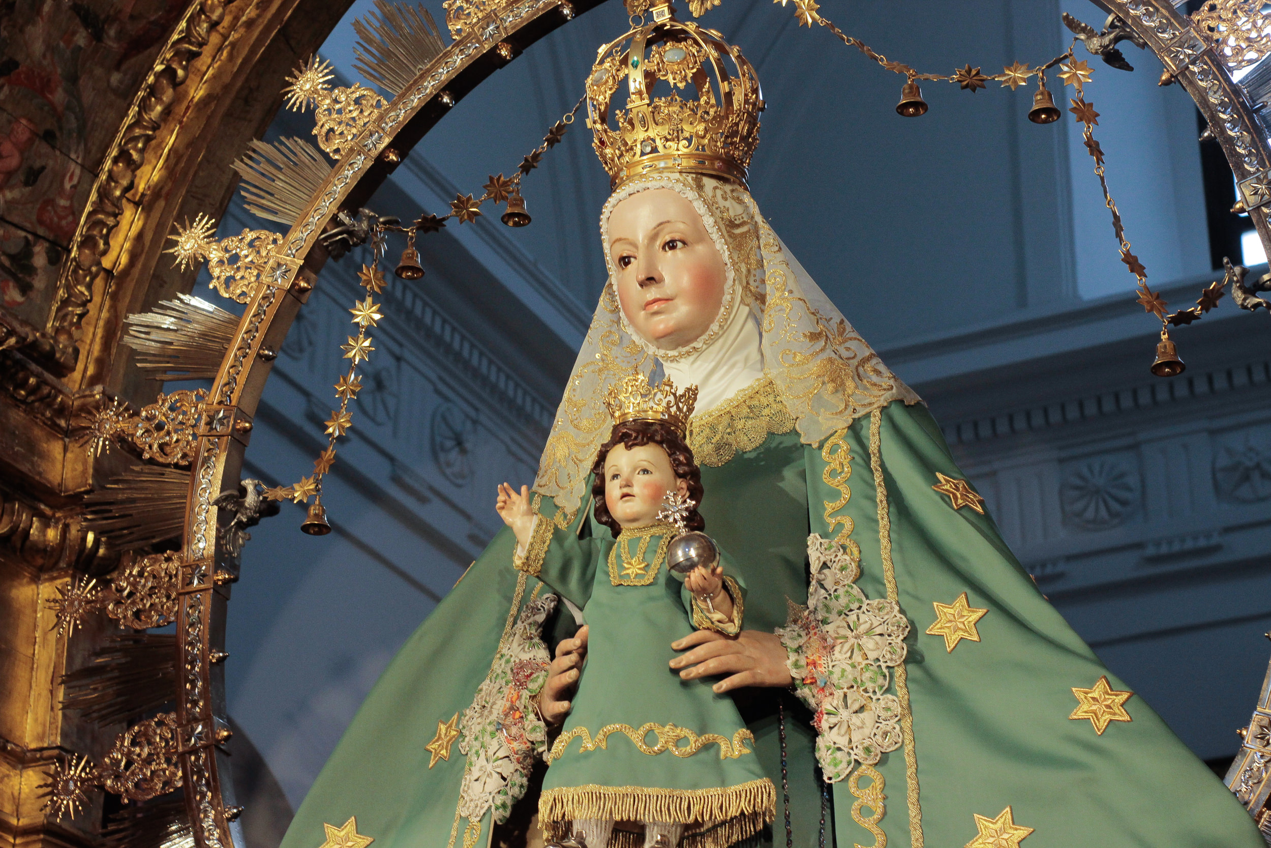La Virgen de la Estrella se encuentra ataviada desde hoy con el terno verde de estrellas doradas, característico de esta época.