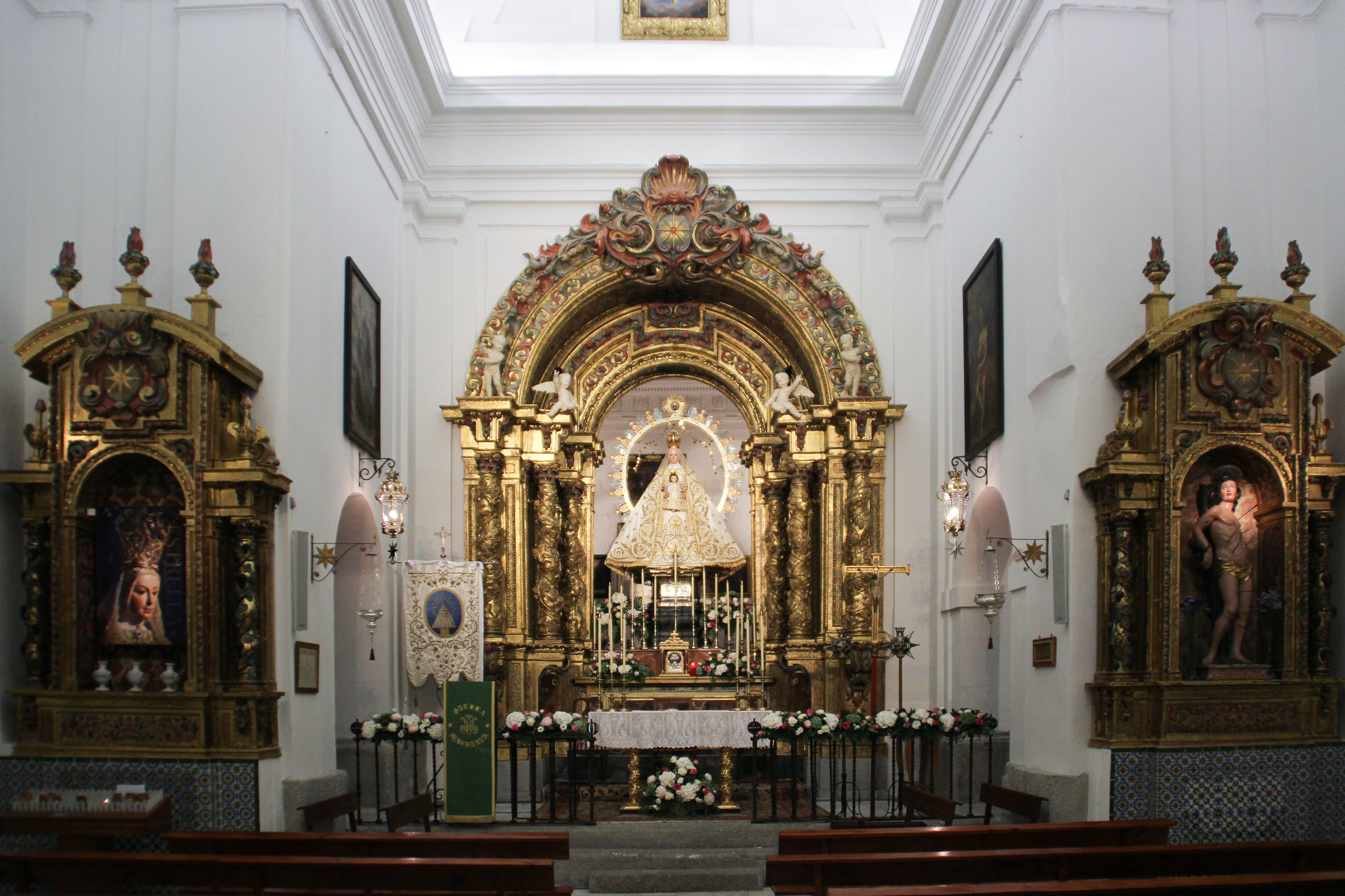 Por su parte, el exorno floral de la Ermita para los cultos está formado por rosas blancas, hortensias.