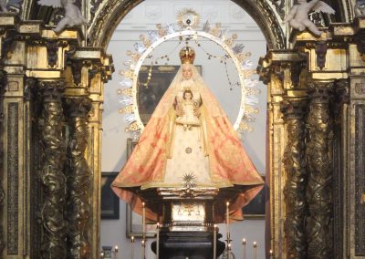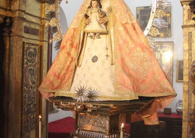 Hoy, Domingo de Resurrección, la Ermita abría con Nuestra Señora de la Estrella ataviada para la Pascua de 2017. Durante las primeras semanas de este tiempo litúrgico de gozo ya alegría para los cristianos, María Santísima de la Estrella permanecerá revestida con el manto rosa y dorado y la salla blanca, restaurada por la Hermandad.