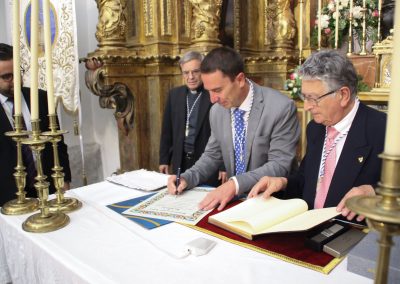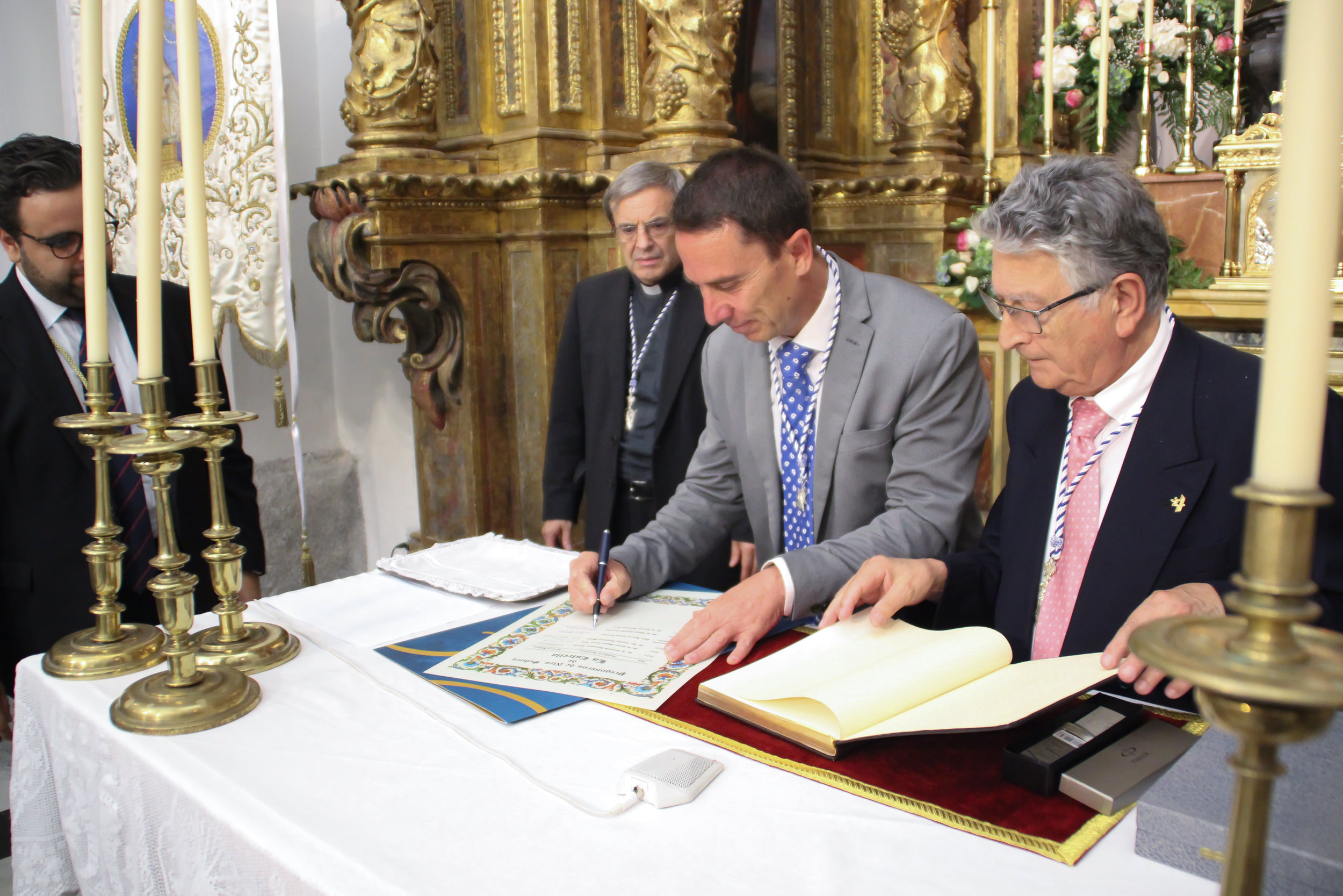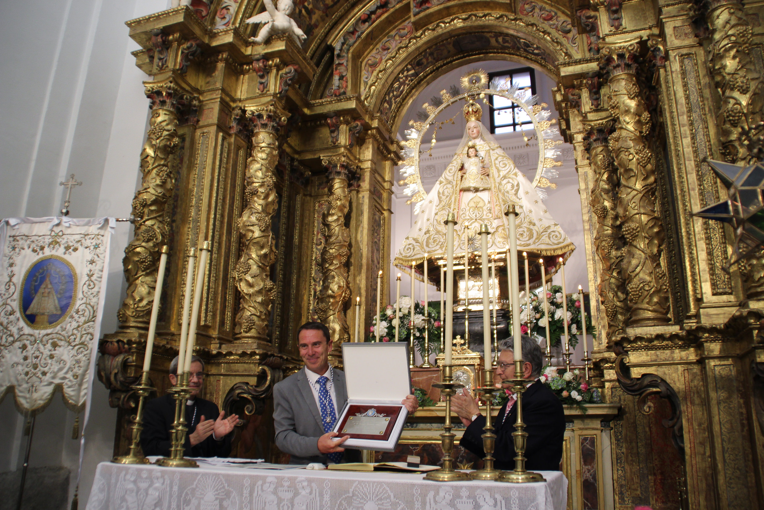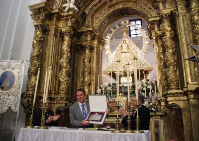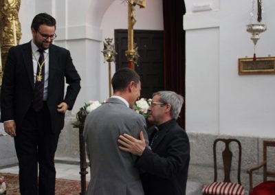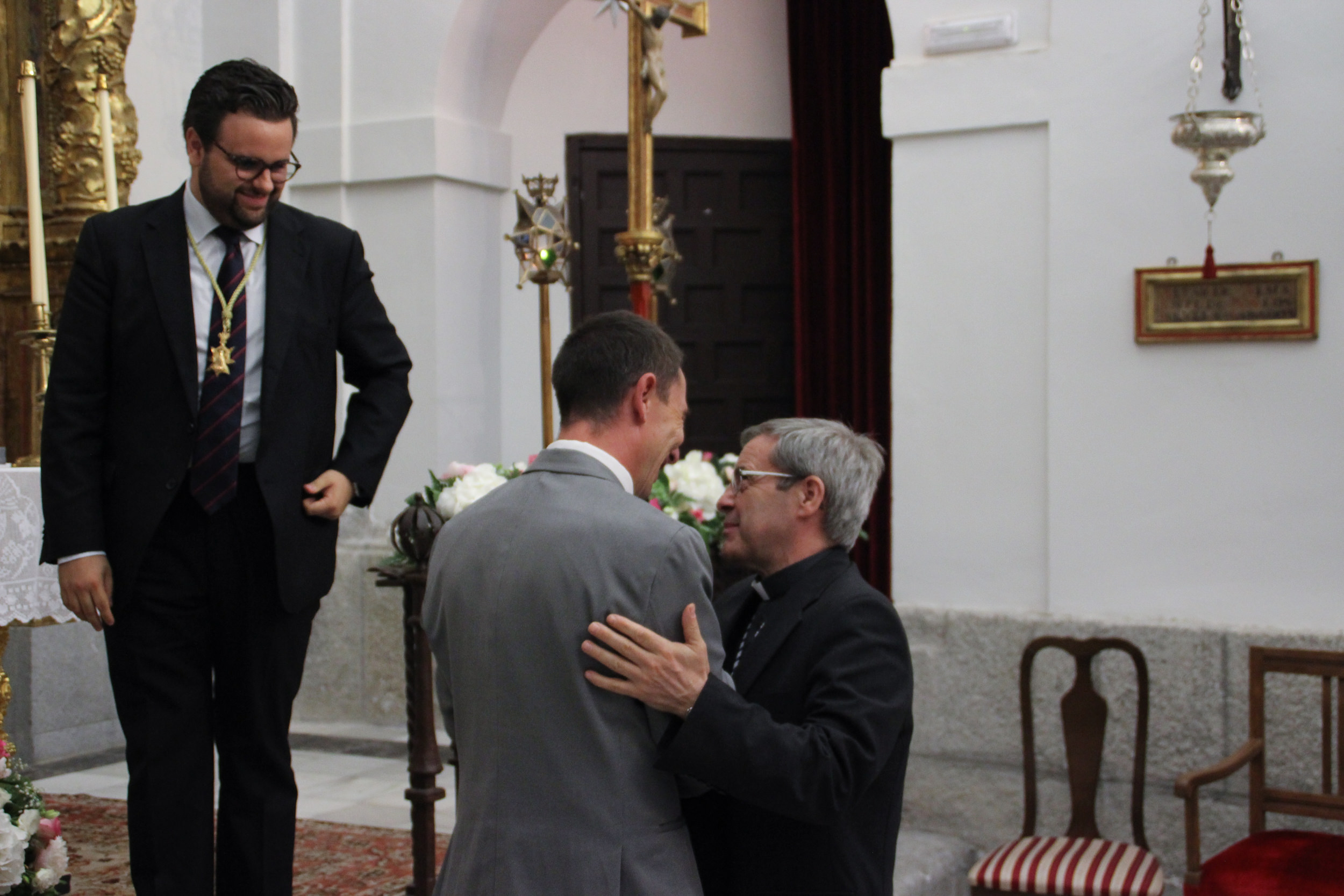 Tras el Pregón, Daniel Torres, Hermano Mayor de nuestra Hermandad obsequió a Enrique Galdeano con la placa conmemorativa del Pregón 2017. D. Jesús Gómez-G. Consentino, Consiliario, le impuso la medalla de Hermano.