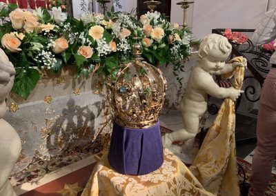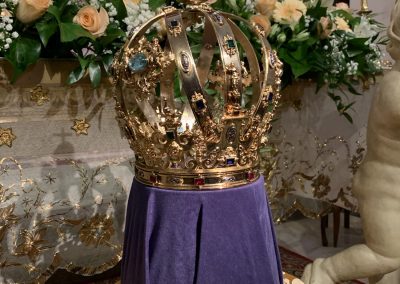 Esta joya de diario del ajuar de la Santísima Virgen, es una obra de fundición fechada a principios del siglo XX que se llevó a cabo bajo los cánones de las coronas imperiales de otras virgenes toledanas, e inspirada en la corona histórica de Nuestra Señora de la Estrella. Esta última joya, elaborada en plata de ley en el siglo XVII se encuentra ya también en los talleres de Orobio de la Torre y se llevará a cabo en ella una profunda restauración, pudiendo ser usada de nuevo por Nuestra Señora de la Estrella, casi 100 años después.