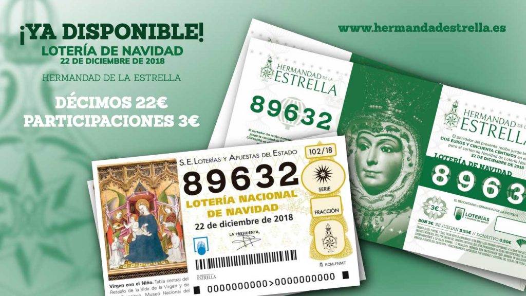 El número, el 89.632 se puede adquirir ya en Décimos (22€) o en Participaciones de 3€ (se juegan 2,50€) en los establecimientos colaboradores así como en la Ermita de la Estrella antes y después de la misa de los sábados, y en el Salón de la Hermandad.